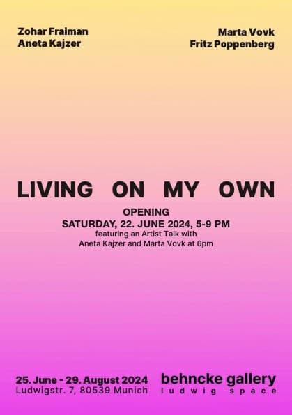 Am 22. Juni eröffnen wir die Ausstellung „Living on my own“, eine Gruppenausstellung mit vier aufstrebenden Künstlerinnen und Künstlern „based in “ Berlin.
